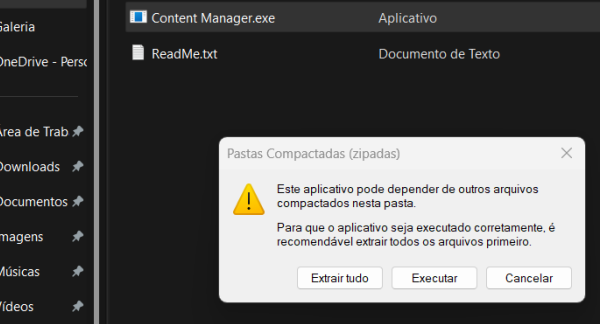 Aparecerão dois arquivos: o readme.txt (que pode ser apagado neste momento) e o “Content Manager.exe” (Você sempre abrirá o Assetto Corsa por ele a partir de agora).