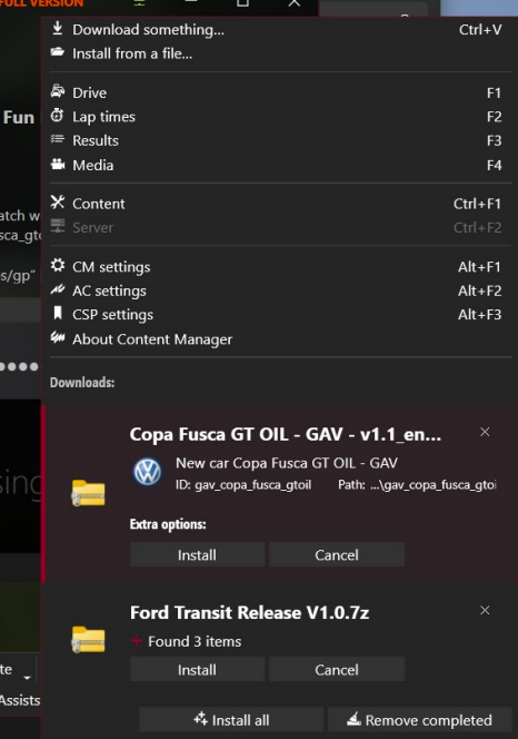 Onde ficam salvos os carros que eu instalo no Assetto Corsa?